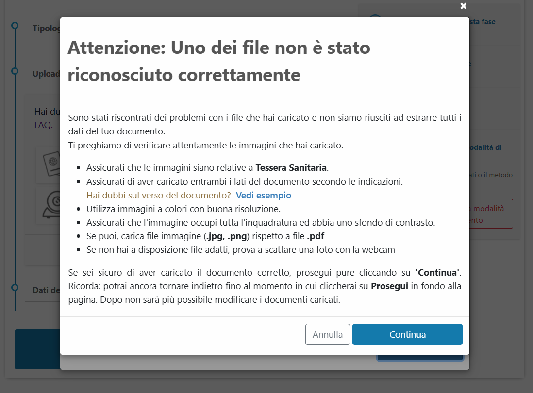 Se le immagini caricate non fossero corrette, il sistema te lo segnala a schermo indicandoti una serie di istruzioni dettagliate su come farlo nella maniera giusta.