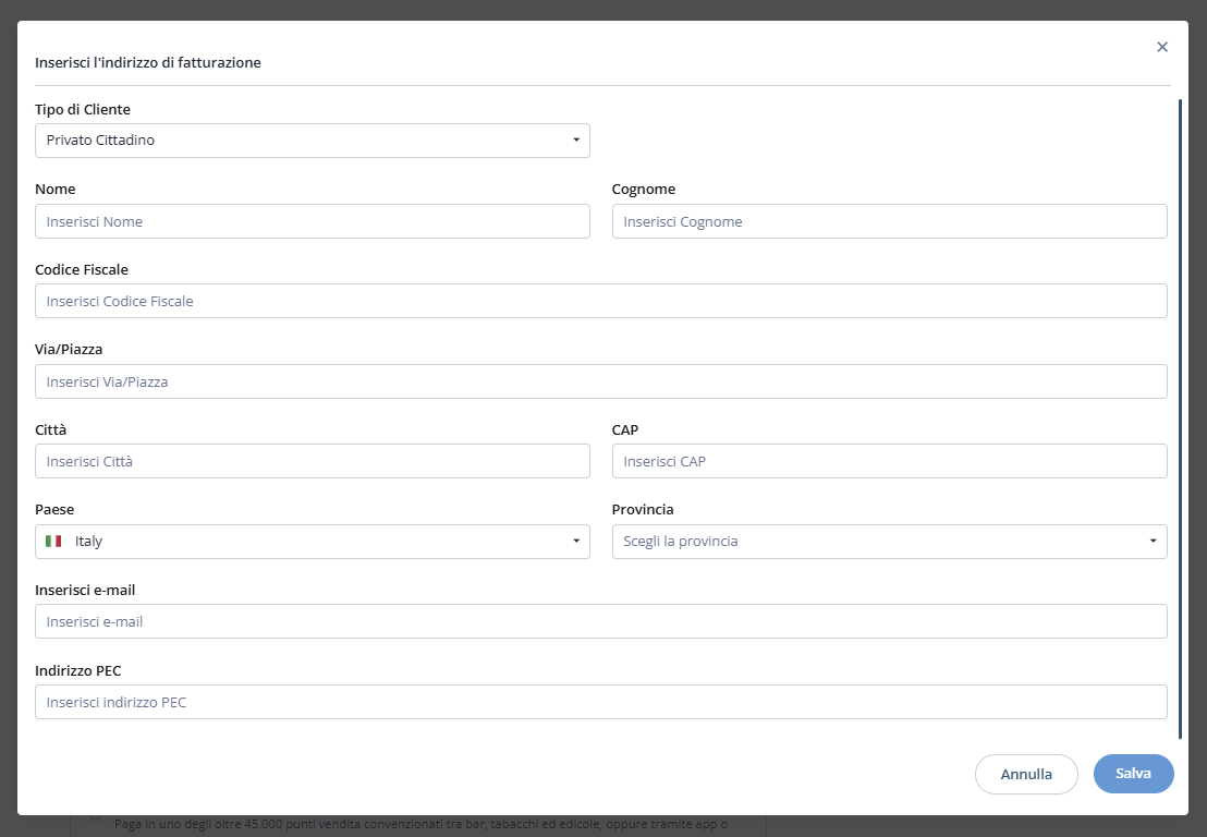 L’ultimo dato necessario sarà l’indirizzo di residenza.
