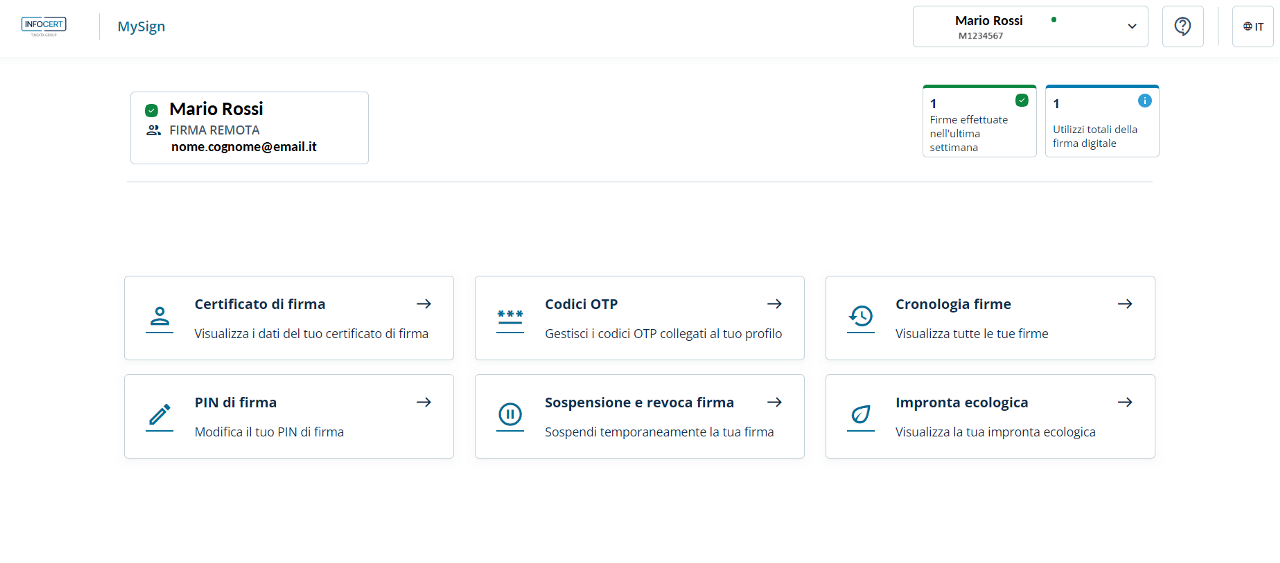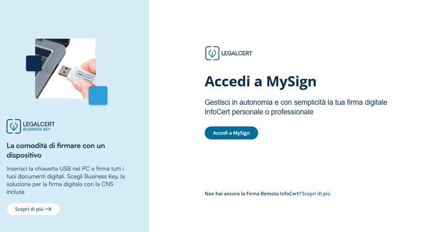 Per la gestione del certificato utilizza le credenziali dell’account InfoCert.