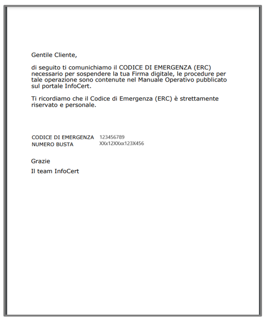 Al suo interno sono presenti i codici per la revoca o per la sospensione della tua firma digitale.