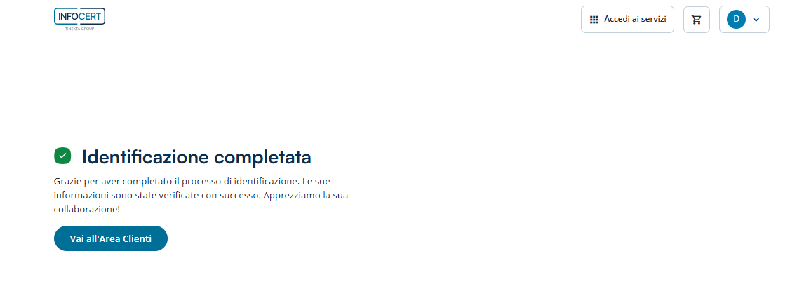 Cliccando sul tasto Completa l’identificazione sarà terminata.