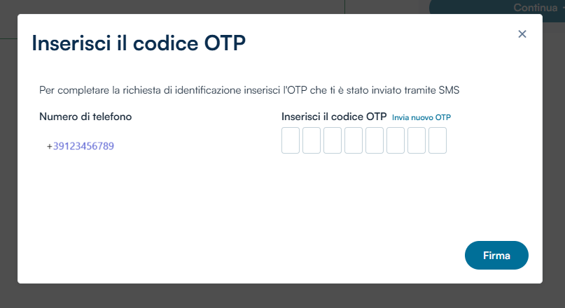 Facendo attenzione a digitarlo correttamente, andrà inserito nel campo Inserisci il codice OTP e si convaliderà l'operazione con un clic sul pulsante Firma.