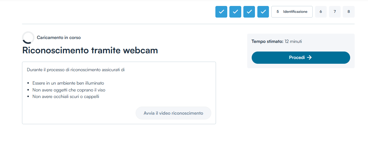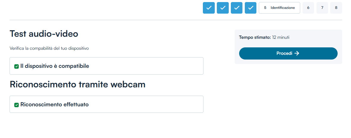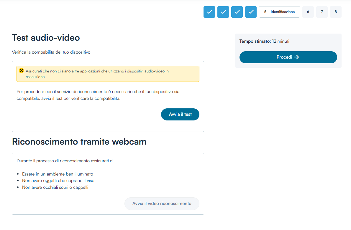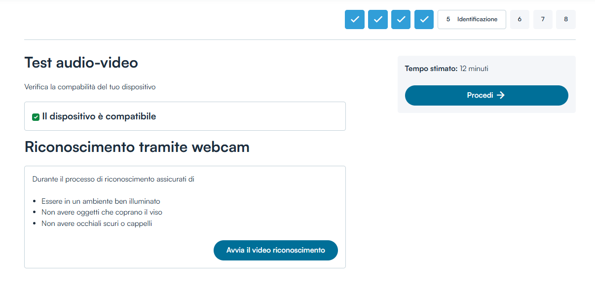 Verificata la compatibilità del dispositivo (spunta verde) cliccare sul tasto Avvia il video riconoscimento.