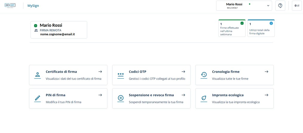 Nell’email di conferma di emissione del certificato sarà presente il link per accedere a MySign.