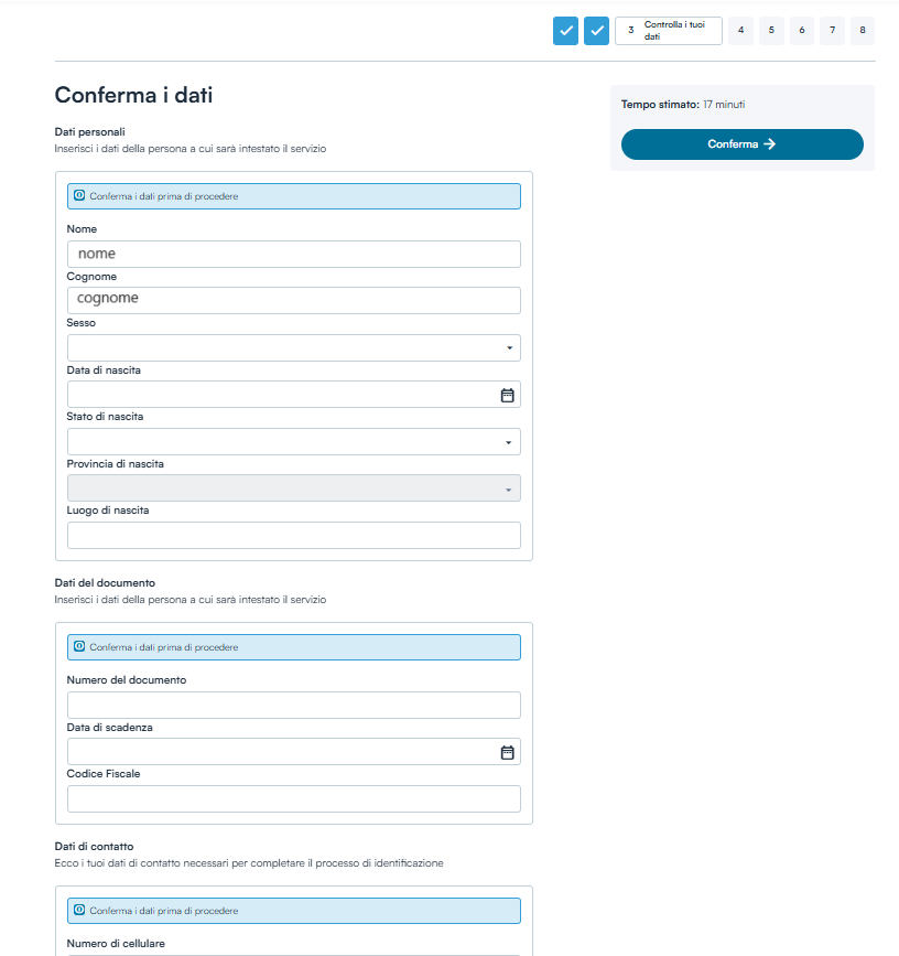 Arrivati allo step 3 è necessario confermare i dati personali relativi all’intestatario del servizio.