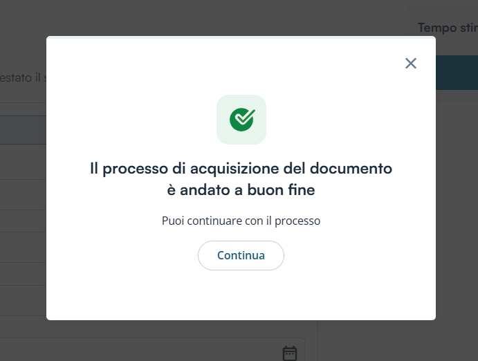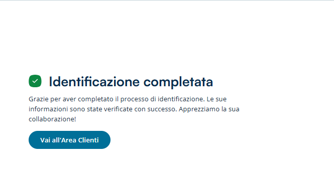 A questo punto, il Sistema mostra a schermo che la documentazione contrattuale è stata correttamente sottoscritta digitalmente e che il processo di riconoscimento è ormai quasi terminato.