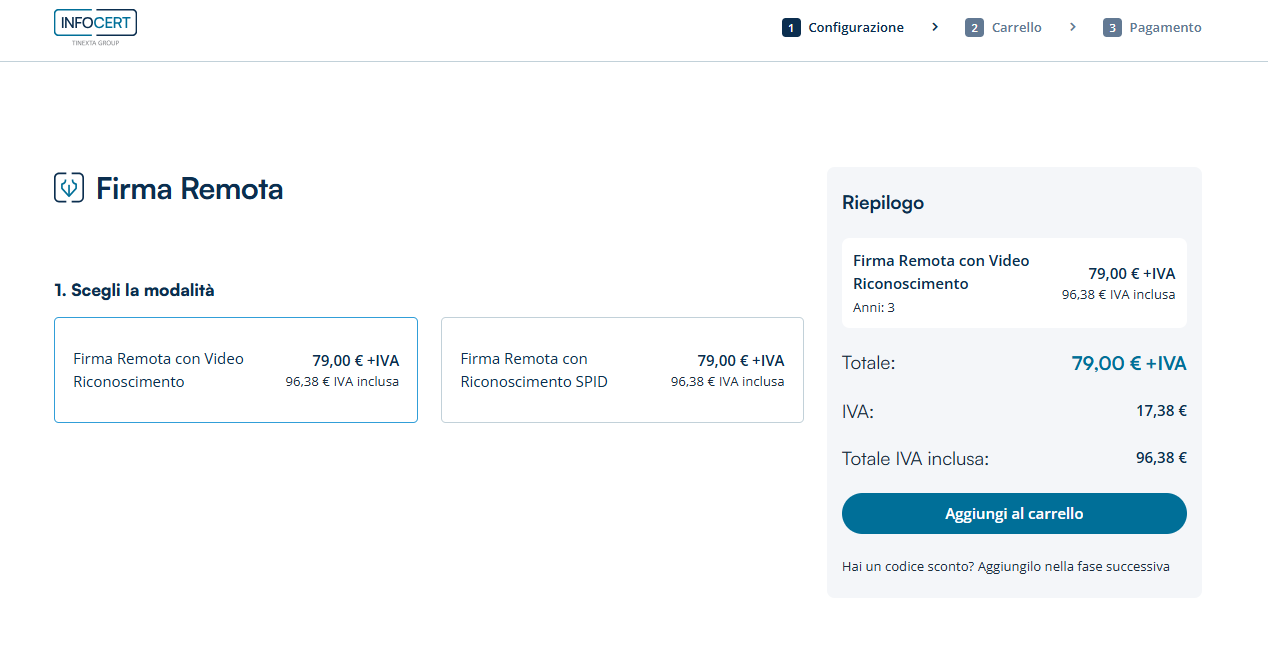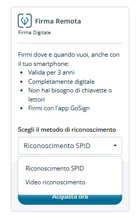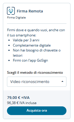 Scorrendo verso il basso nella pagina, sarà possibile trovare il pannello su cui cliccare "Acquista subito" e scegliere il metodo di Video riconoscimento.