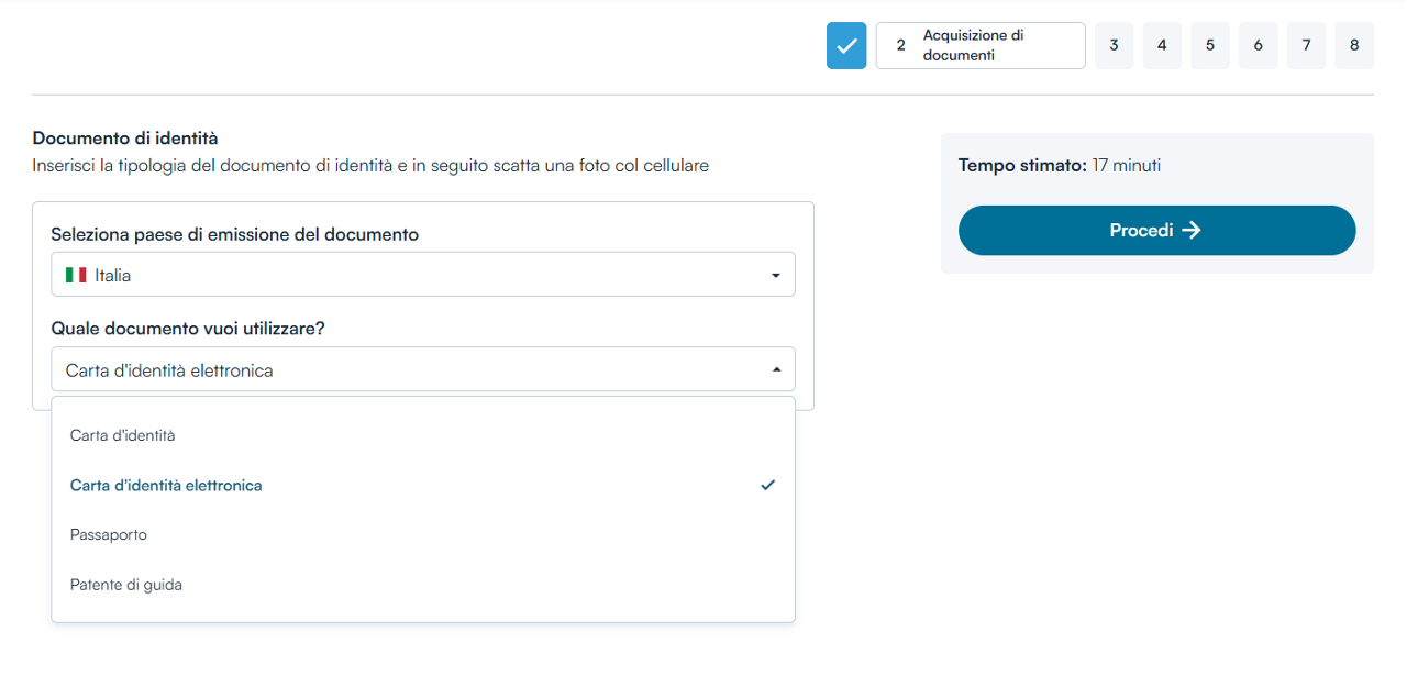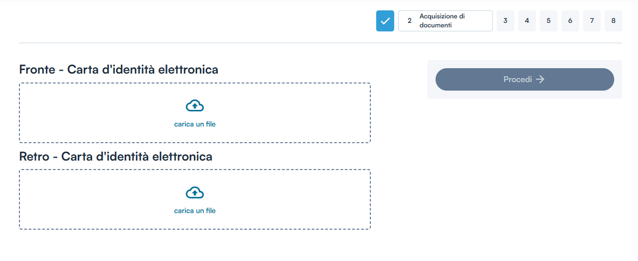 Nella fase 2 occorre effettuare l'upload del documento di riconoscimento, scegliendo tra: