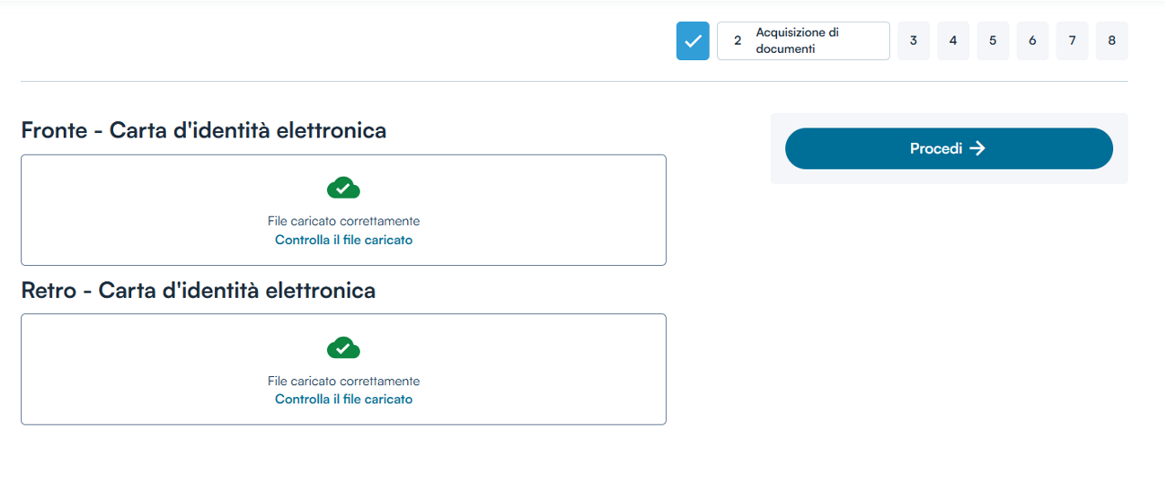A caricamento avvenuto cliccare su Procedi per la conferma di corretta acquisizione.
