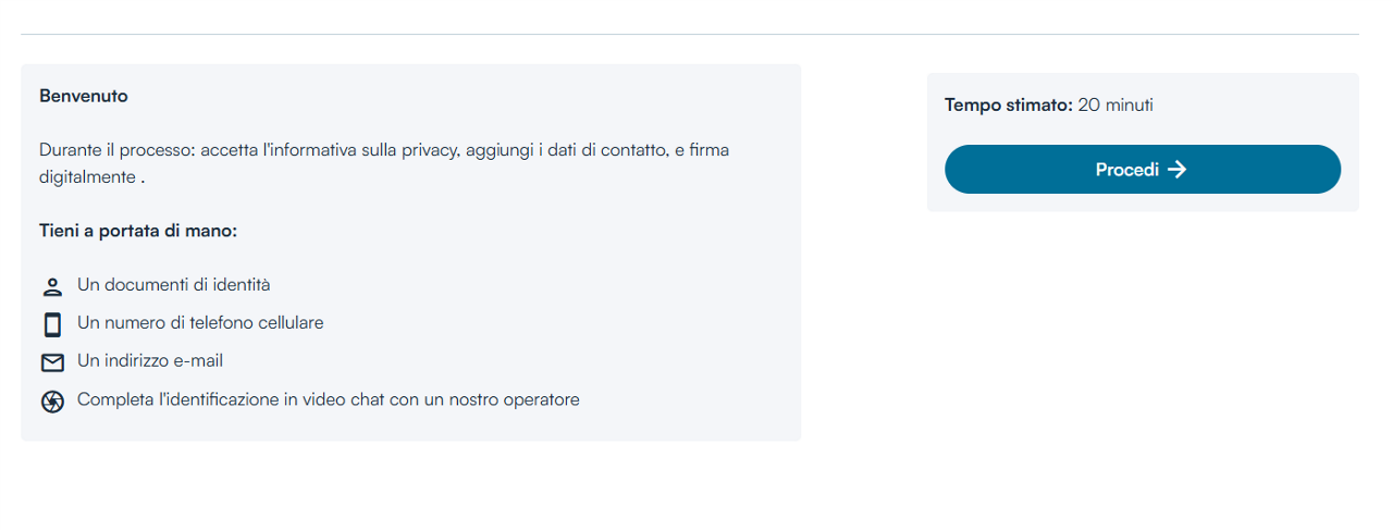 Una volta confermati i dati inseriti e scattato il selfie, si potrà procedere alla fase di identificazione con l'Operatore.