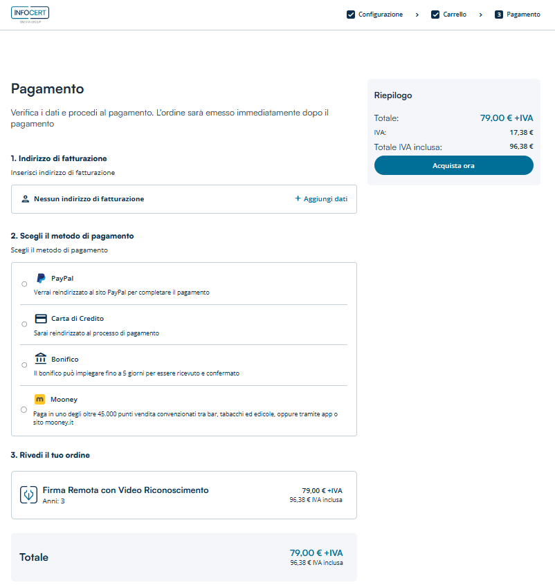 Si inizia quindi il processo di richiesta con un clic sul pulsante Acquista ora.