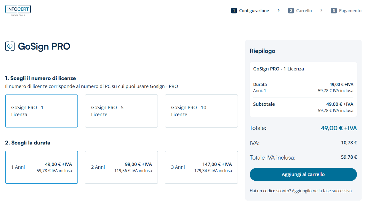 La richiesta di acquisto della licenza GoSign PRO può partire da: