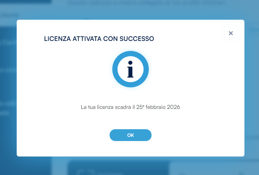 Dopo averla inserita, ti viene indicato a schermo che la licenza è stata attivata con successo.