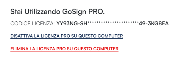 Per avere maggiori informazioni sulla differenza tra Disattivare ed Eliminare la licenza di GoSign PRO, consulta questo contenuto.
