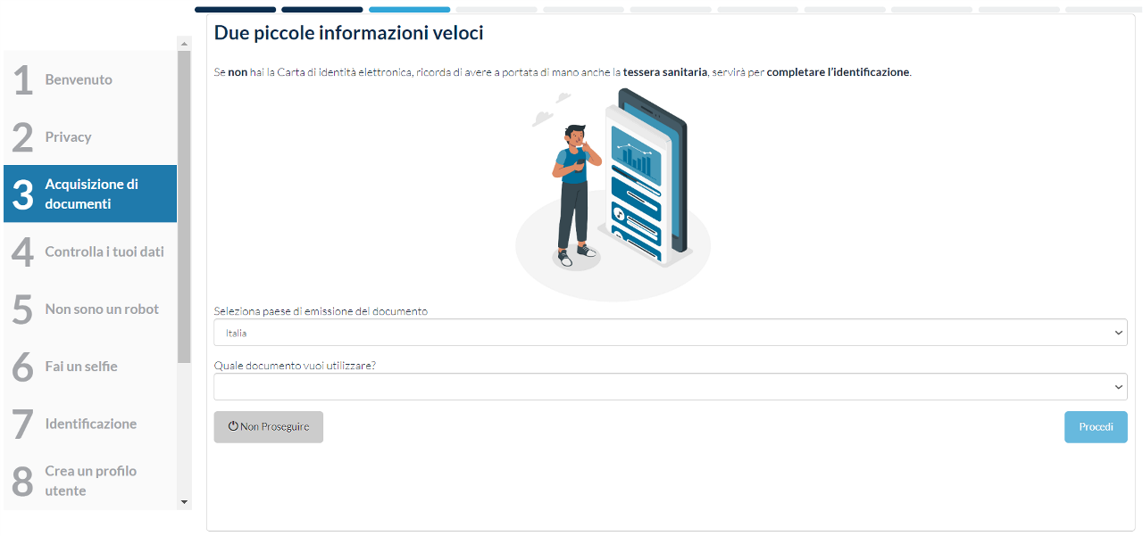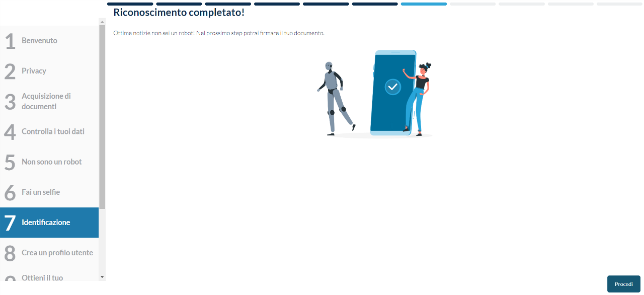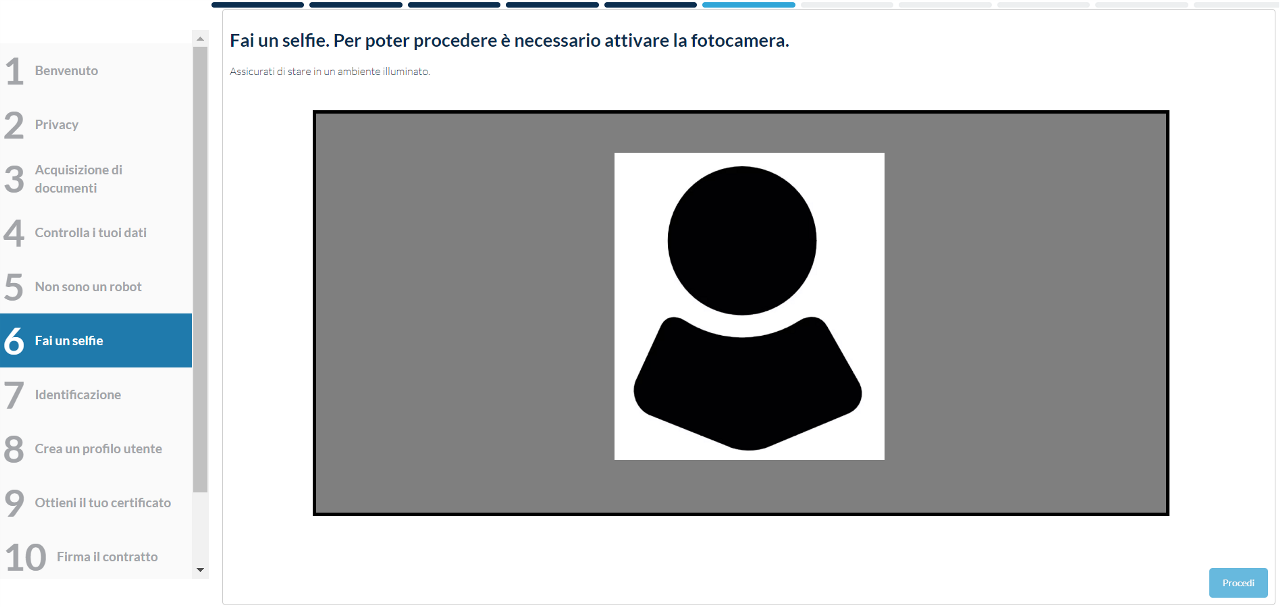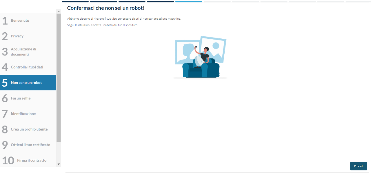 Il punto 5 e il punto 6 richiedono la conferma, tramite lo scatto di un selfie, della propria identità.