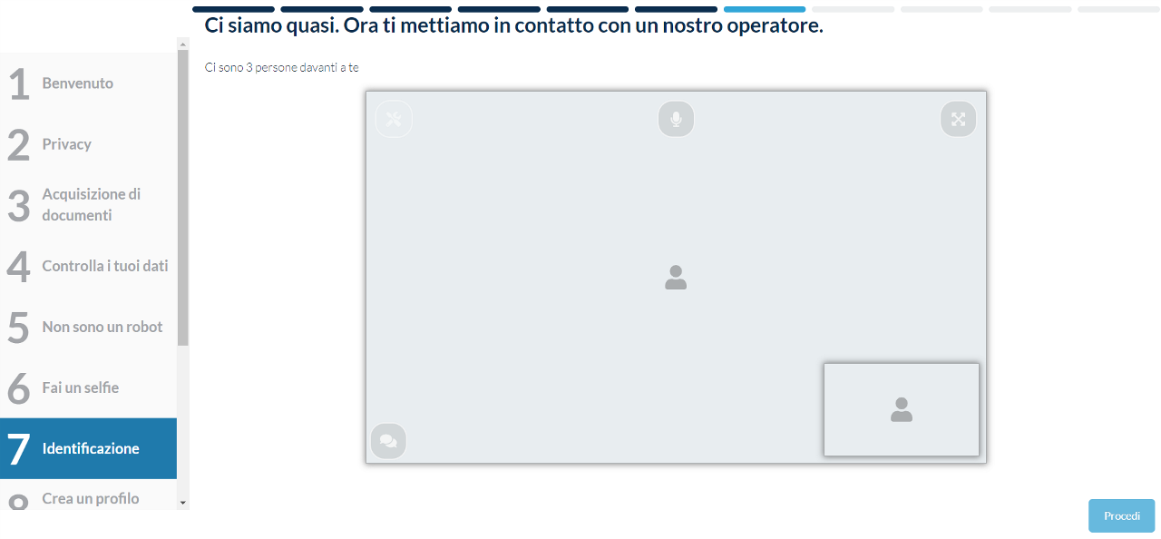Successivamente al controllo, sarà necessario attendere il collegamento da parte dell’operatore addetto alla procedura di videoidentificazione.