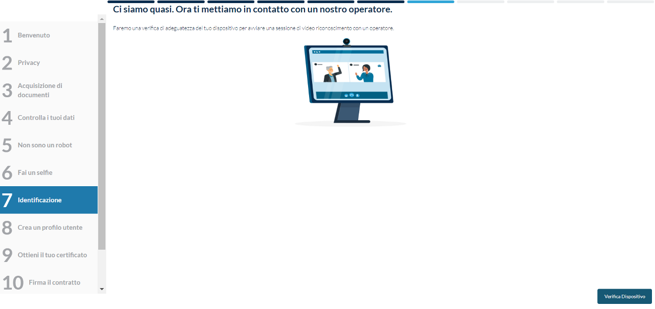 Il passaggio successivo prevede la verifica dei requisiti tecnici del dispositivo per il videoriconoscimento.