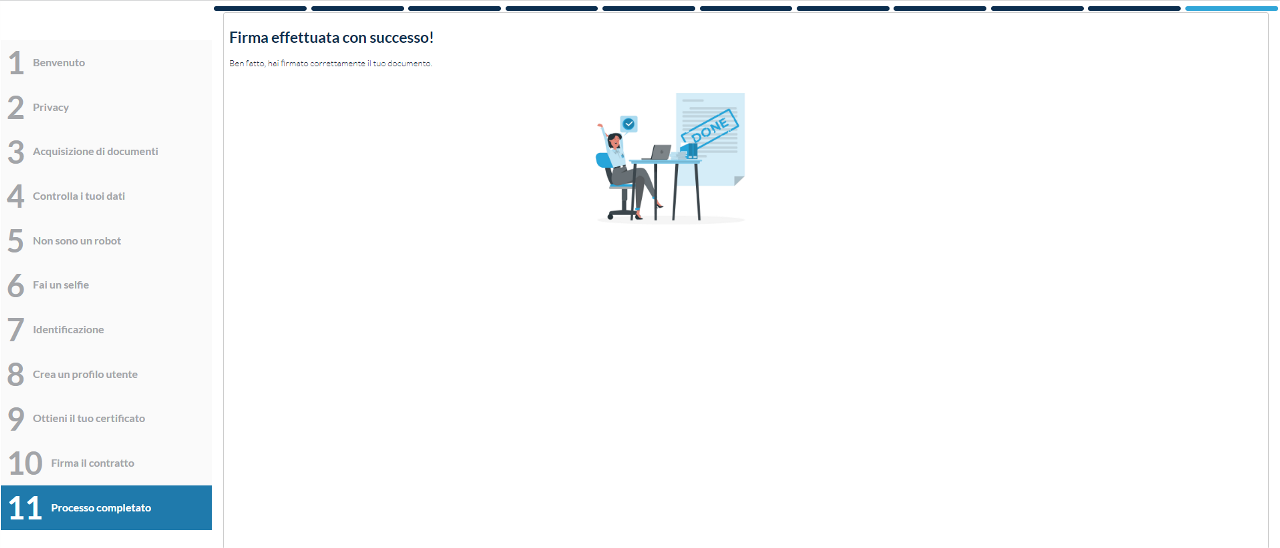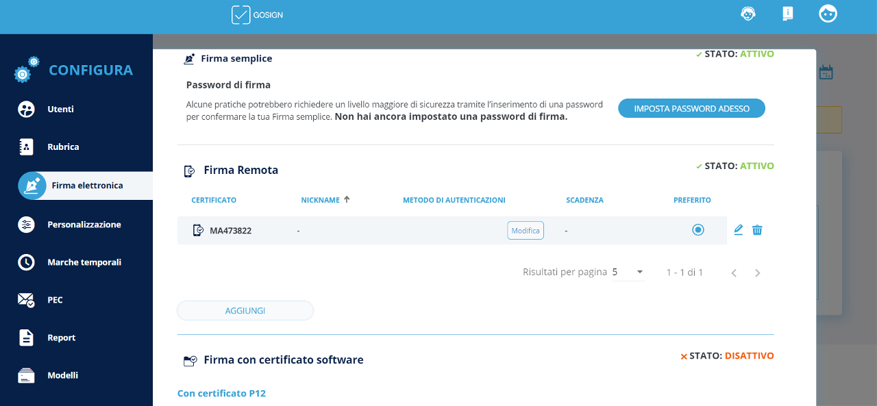 Una volta completato il processo di impostazione del PIN, la firma risulterà correttamente attivata.