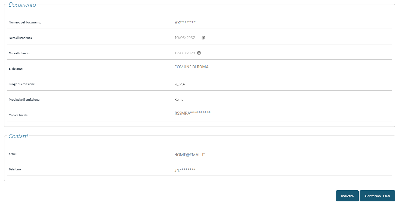 Al completamento del controllo ed eventuale inserimento dei dati mancanti, sarà possibile cliccare sul tasto Conferma i dati.