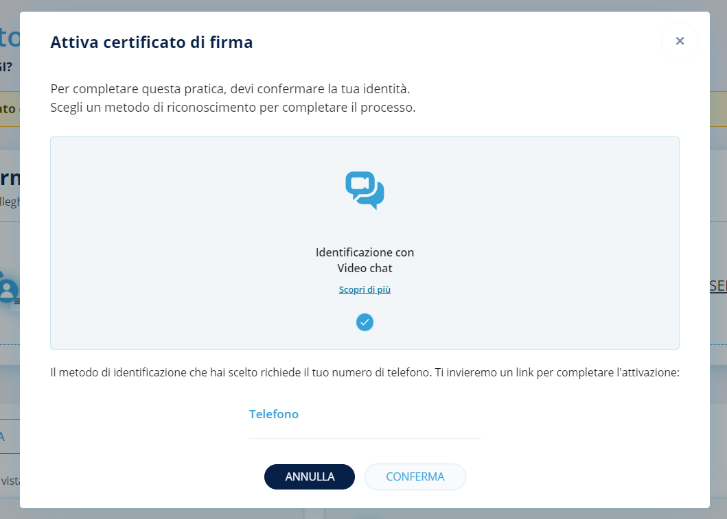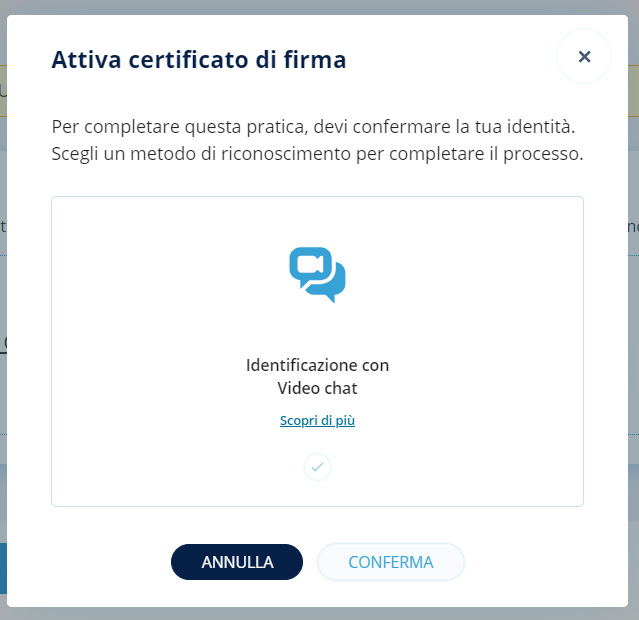 Un click su Conferma permetterà di accedere all’identificazione con Video chat.