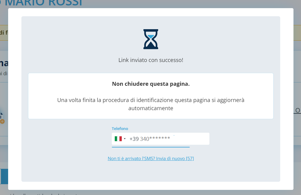 Sarà richiesto l’inserimento del numero telefonico per la ricezione del link che permetterà di iniziare la procedura di video riconoscimento.
