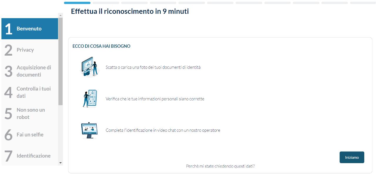 Il primo step del video riconoscimento presenta i passaggi necessari al completamento della procedura.