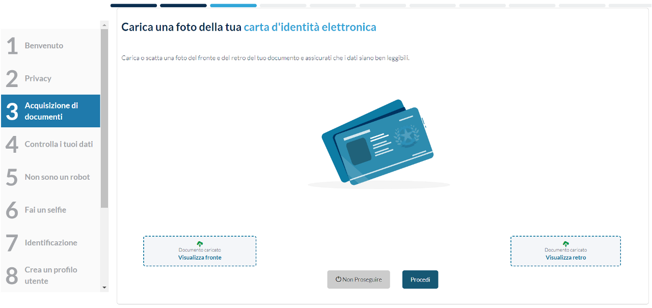 Sarà necessario caricare sia il fronte che il retro del documento.