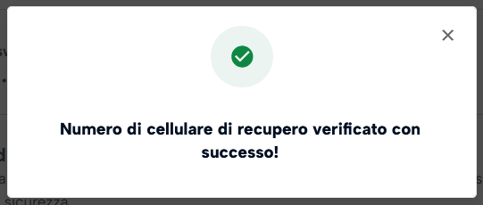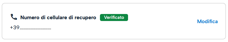 A questo punto, è possibile notare la spunta "Verificato" accanto al nuovo numero di cellulare di recupero.