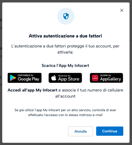 Segui le operazioni richieste per attivare il servizio ed inserire un ulteriore livello di sicurezza all'account PEC.