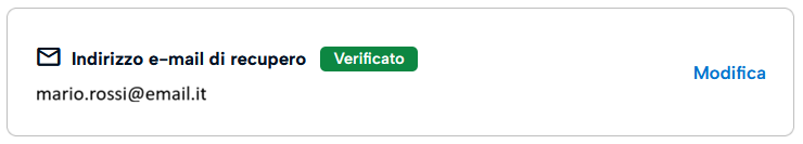 A questo punto, è possibile notare la spunta "Verificato" accanto all'indirizzo email di recupero.