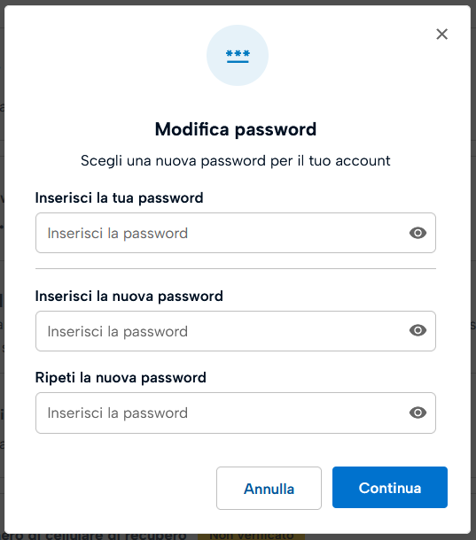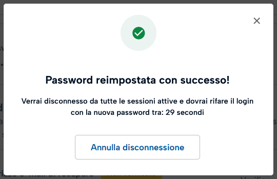 Ti viene indicato a schermo che l'operazione di modifica password è stata completata.