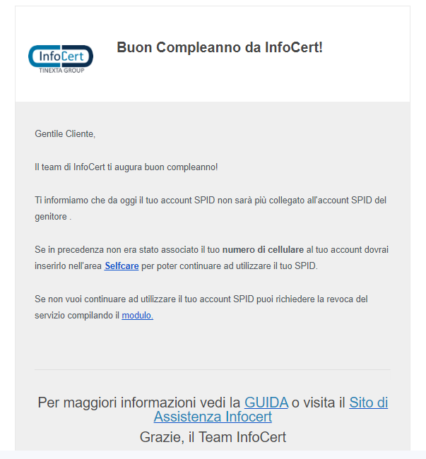 L’utenza SPID del minore verrà automaticamente sospesa al compimento della maggiore età.